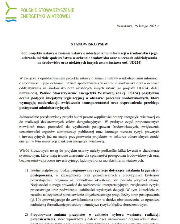Stanowisko PSEW dot. projektu ustawy o zmianie ustawy ooś (UD224)
