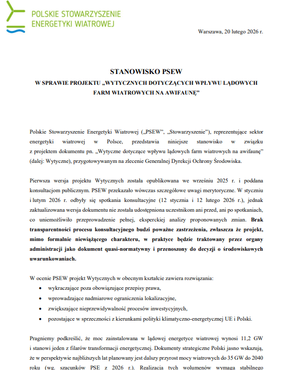 Stanowisko PSEW ws. Wytycznych dot. wpływu LEW na awifaunę